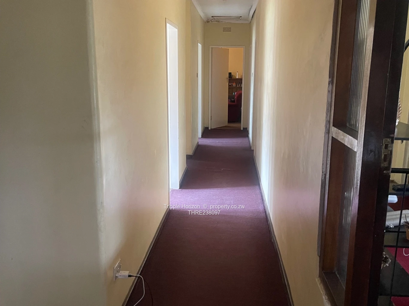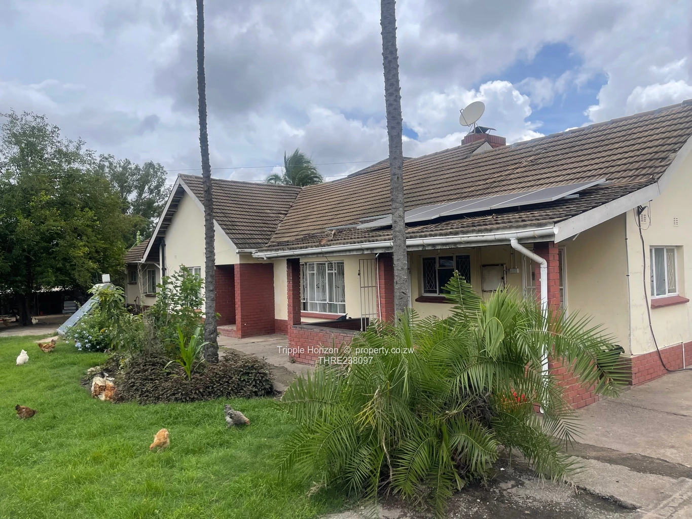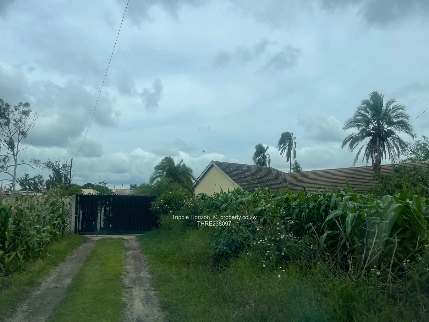 Charming 4-bedroom, 3-bathroom family home on a generous 4 000 m² stand in Hatfield, Harare South — ideal for buyers seeking space, comfort and reliable water supply. The single-storey residence (300m²) presents a neat white exterior with a red-tiled roof and sheltered front verandah (photos show the welcoming façade and mature shrubs), perfect for morning coffee or watching kids play on the lawn. Inside, the living spaces are bright and airy with decorative ceilings and archways that add character (see lounge image with ceiling fan and large windows).