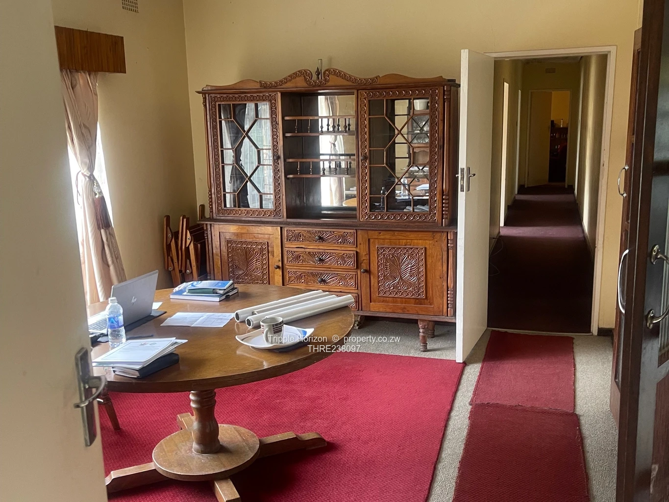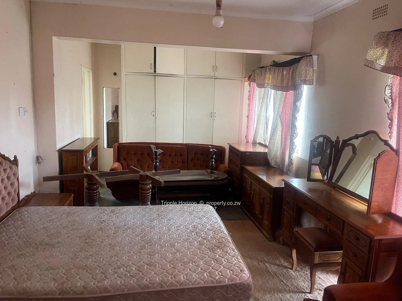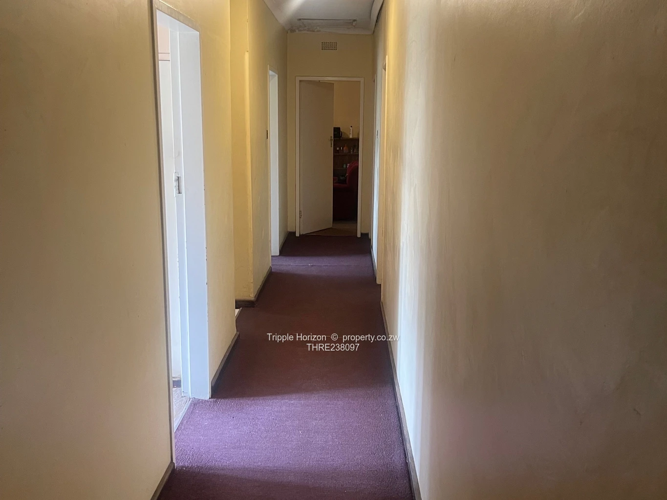 Charming 4-bedroom, 3-bathroom family home on a generous 4 000 m² stand in Hatfield, Harare South — ideal for buyers seeking space, comfort and reliable water supply. The single-storey residence (300m²) presents a neat white exterior with a red-tiled roof and sheltered front verandah (photos show the welcoming façade and mature shrubs), perfect for morning coffee or watching kids play on the lawn. Inside, the living spaces are bright and airy with decorative ceilings and archways that add character (see lounge image with ceiling fan and large windows).