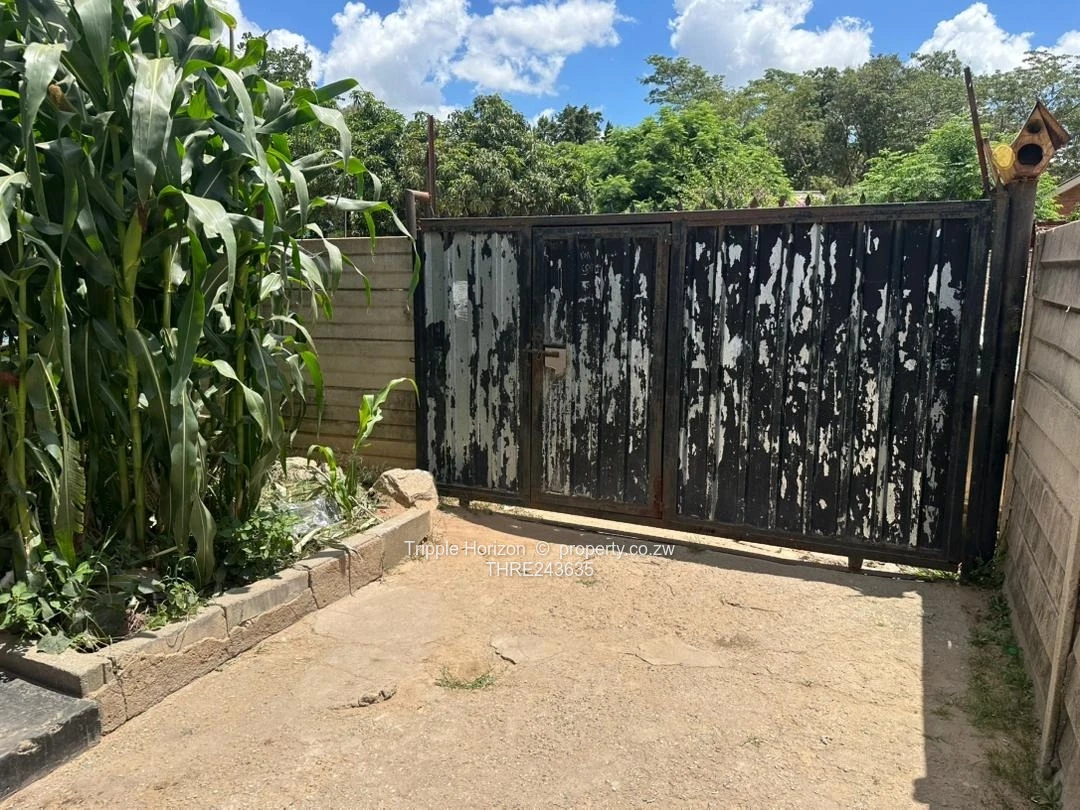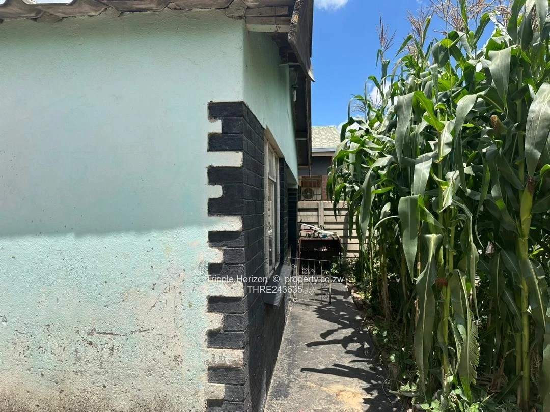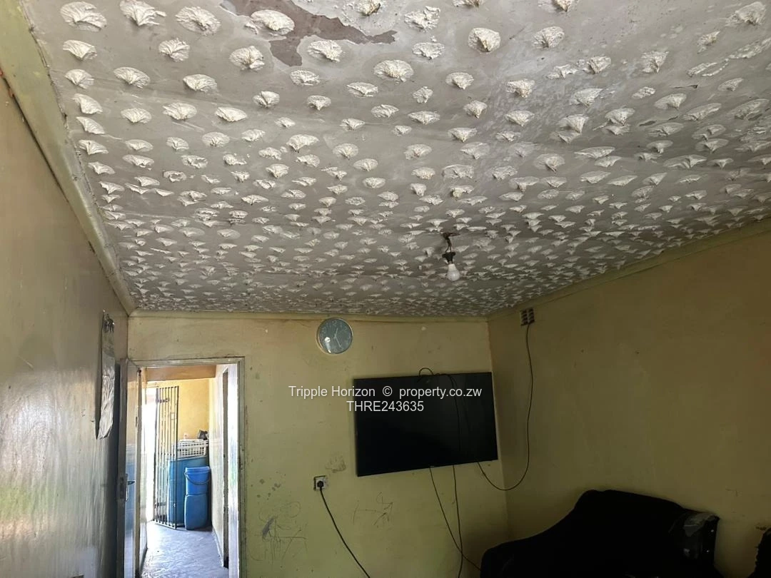 Solid investment in St. Marys, Chitungwiza — a compact 4-bedroom, 1-bathroom family home on a 150 m² stand with a 70 m² footprint, ripe for value-adding renovations. The secure walled compound with main road frontage and a heavy-duty gate opens onto a paved driveway and yard (seen in the photos) — ideal for parking or a small business entrance. Inside the comfortable lounge you’ll find a textured decorative ceiling and a fireplace, creating a cosy focal point ready for restoration. The property enjoys municipal water, a sewer connection and good ZESA supply, with tiled finishes in parts of the home and durable paved surfaces throughout. Exterior images show robust block construction with distinctive black corner detailing and a productive garden area currently planted with maize — handy for extra income or homegrown produce. This house is perfect for a growing family or an investor seeking a short-term flip: renovate the bathroom and kitchen, refresh the paint and unlock rental or resale potential. Prime location, services already in place — view today to imagine the possibilities clean title deeds. Contact us for a viewing.