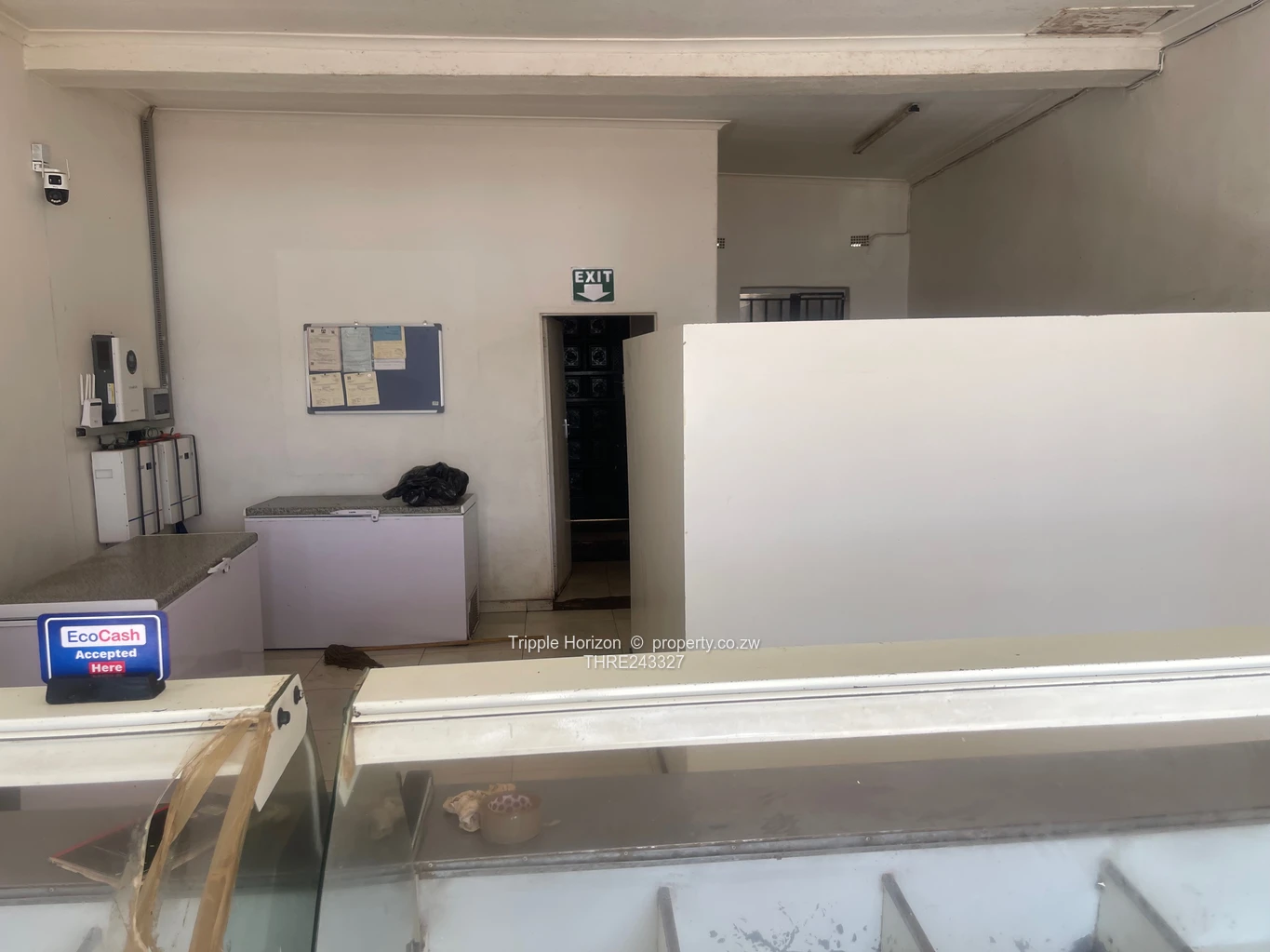 Shop & Retail property for sale in Kambuzuma, Harare High Density — ideal investment or owner-operator opportunity. Sitting on 100 m² with a 62 m² built-up area, this solid brick retail unit currently fitted out as a butchery (K2 BUTCHERY signage visible in photos) offers a prominent street-facing facade, clear shopfront and external benches/awning for customer queuing. Interior images show ready-to-use refrigerated display cabinets, chest freezers, tiled floors, a counter area, CCTV, staff noticeboard and a backroom/exit for storage and safe handling. The immediate hardstand in front provides convenient customer parking and easy delivery access for trucks and pickups. High visibility from the road and neighbouring retail units promises strong foot traffic and day-to-day convenience trading. Perfect for butchery, deli, bakery, fast-moving consumer goods or conversion to other retail uses. Well-suited for quick takeover with existing fixtures in place. Contact us to arrange a viewing and discuss terms.